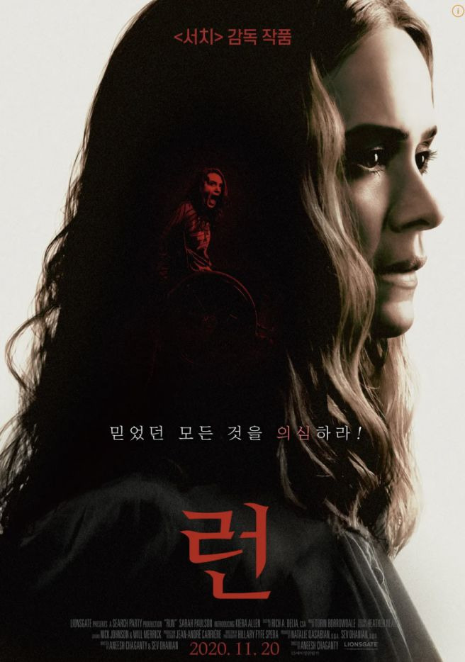 안녕하세요! 오늘은 스릴러 영화 하나를 가지고 와봤어요. 바로 2020년 작품인 '런'이라는 영화인데요. 아니쉬 차간티 감독 작품인데, '서치'라는 영화감독이라고 하면 많은 분들이 아실 것 같아요! 긴장감 넘치는 영화였던 이 영화! 리뷰 시작해 볼게요!